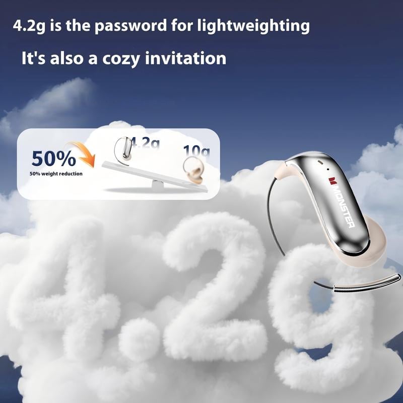 Zero-Gravity Titanium Alloy Ear Hooks: The memory wire titanium alloy ear hooks create a "floating" sensation around your ears, providing a secure fit during activities like running. Weighing just 0.14 ounces per ear hook, they are incredibly lightweight and comfortable for all-day wear without discomfort.